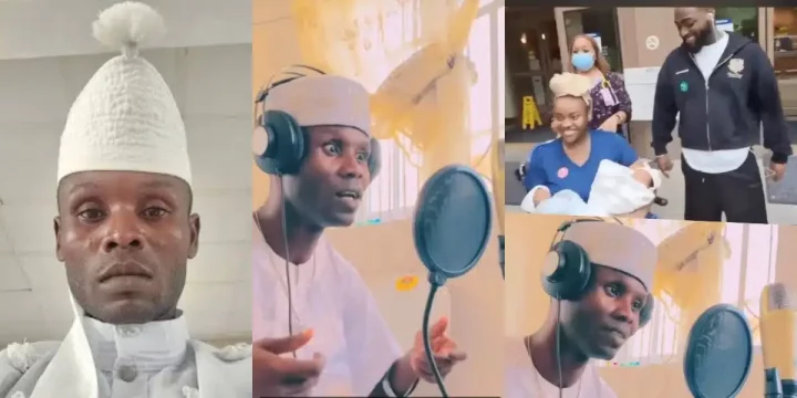 A video that surfaced onlline shows him in a studio singing praises and congratulations to Davido and Chioma and calling them Daddy and Mummy Twins.